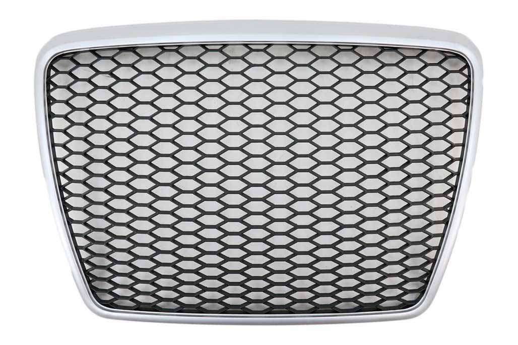 Badgeless Front Grille suitable for Audi A6 4F C6 (2004-2011) Honeycomb RS Design Silver Border