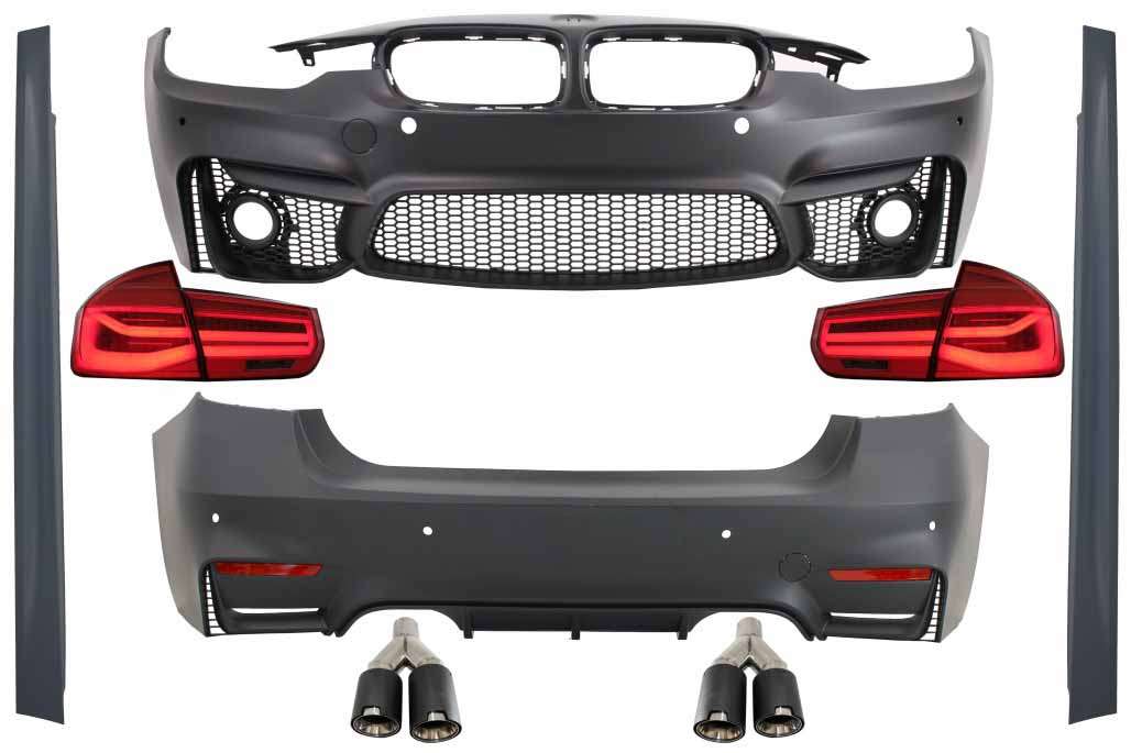 Body Kit suitable for BMW 3 Series F30 (2011-2019) with LED Taillights Dynamic Sequential Turning Light and Dual Twin Exhaust Muffler Tips Carbon