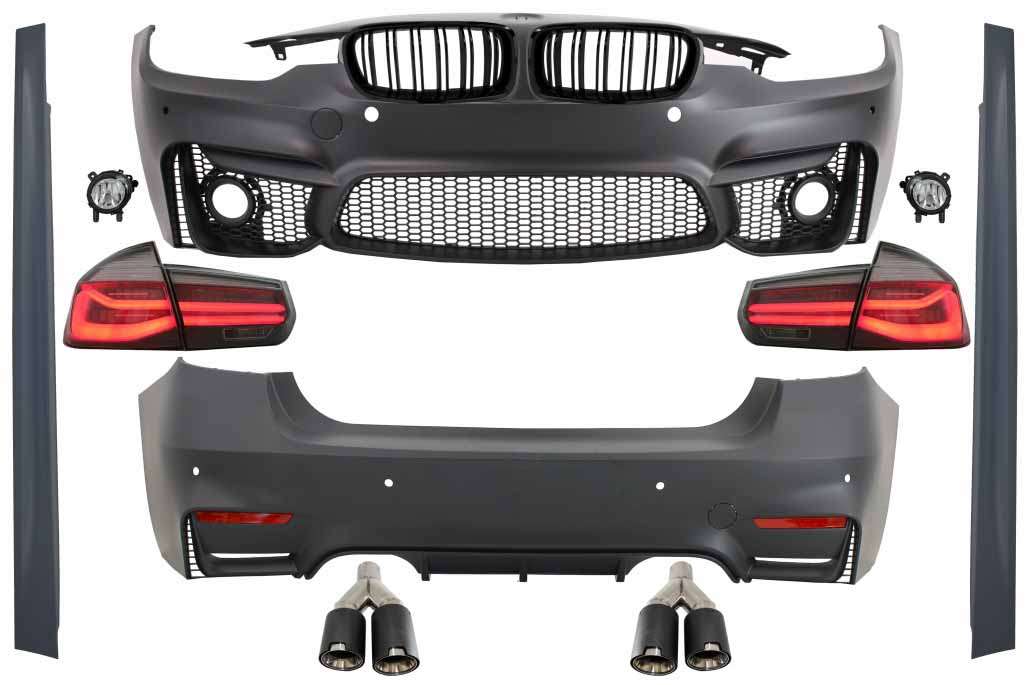 Body Kit suitable for BMW 3 series F30 (2011-2019) with LED Taillights Dynamic Sequential Turning Light and Exhaust Muffler Tips Carbon