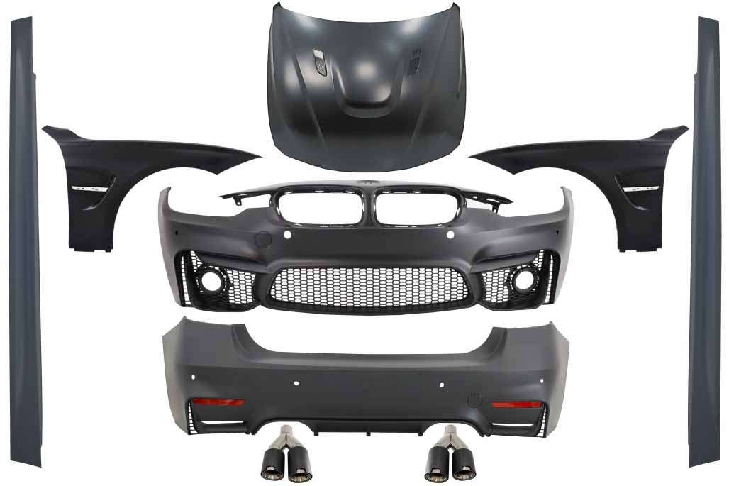Body Kit suitable for BMW F30 (2011-2019) EVO II M3 CS Design with Front Fenders and Hood Bonnet & Muffler Tips Carbon