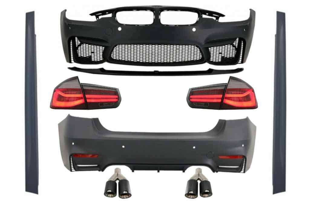 Body Kit with Dual Twin Exhaust Muffler Tips suitable for BMW 3 series F30 (2011-2019) and LED Taillights Dynamic Sequential Turning Light EVO II M3 CS Design