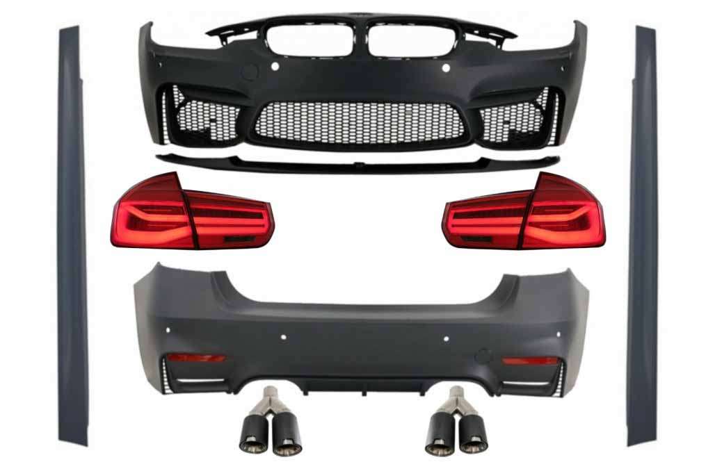 Body Kit with Dual Twin Exhaust Muffler Tips suitable for BMW F30 (2011-2019) and LED Taillights Dynamic Sequential Turning Light EVO II M3 CS Style Without Fog Lamps