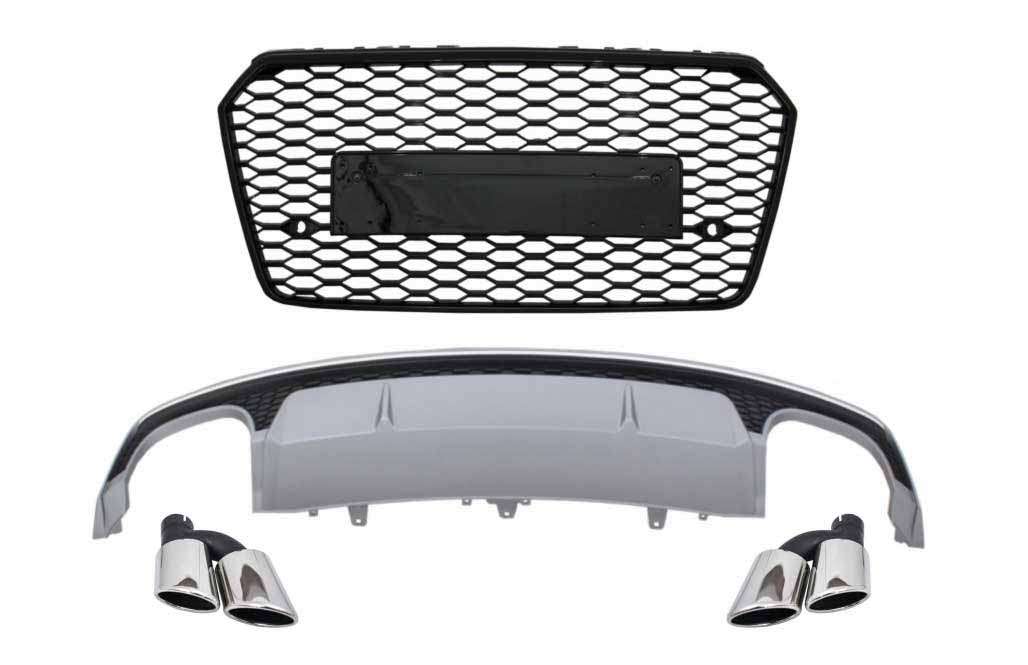 Bumper Valance Air Diffuser with Exhaust Muffler Tips and Front Grille suitable for Audi A7 4G Facelift (2015-2017) S7 Design
