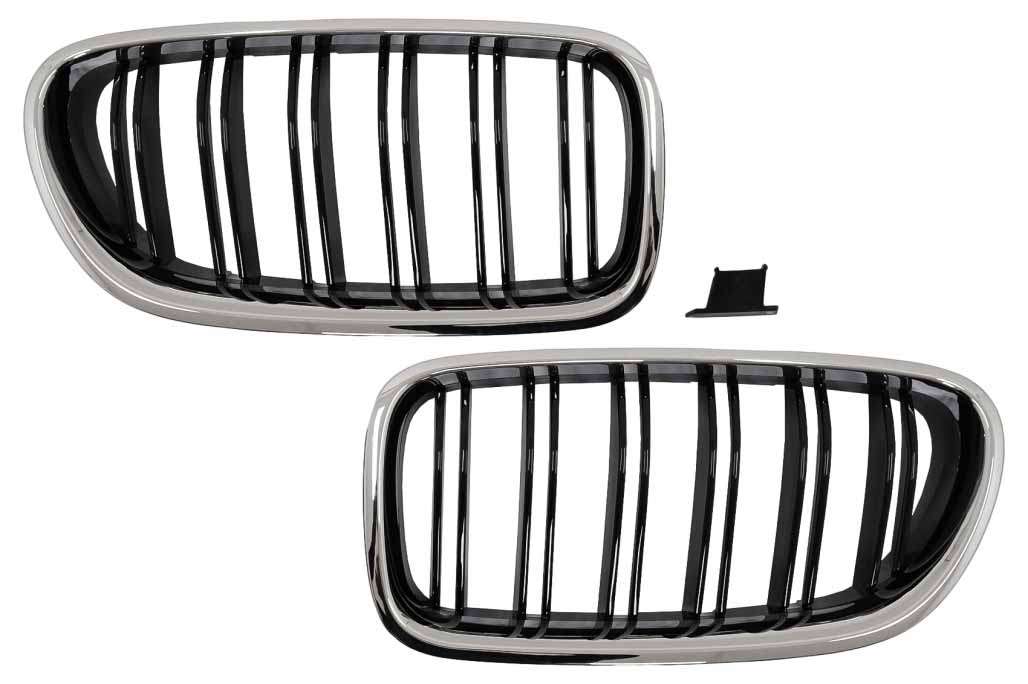 Central Kidney Grilles suitable for BMW 5 Series F10 F11 (2010-2017) Chrome Frame Piano Black Double Stripe