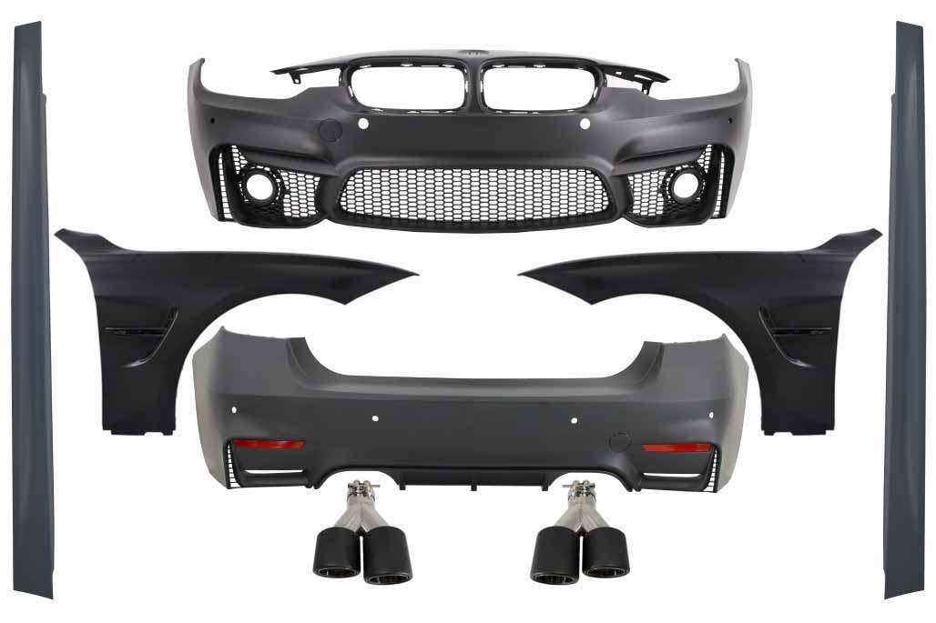Complete Body Kit suitable for BMW 3 Series F30 (2011-2019) with Front Fenders and Exhaust Muffler Tips Carbon Fiber EVO II M3 CS Design