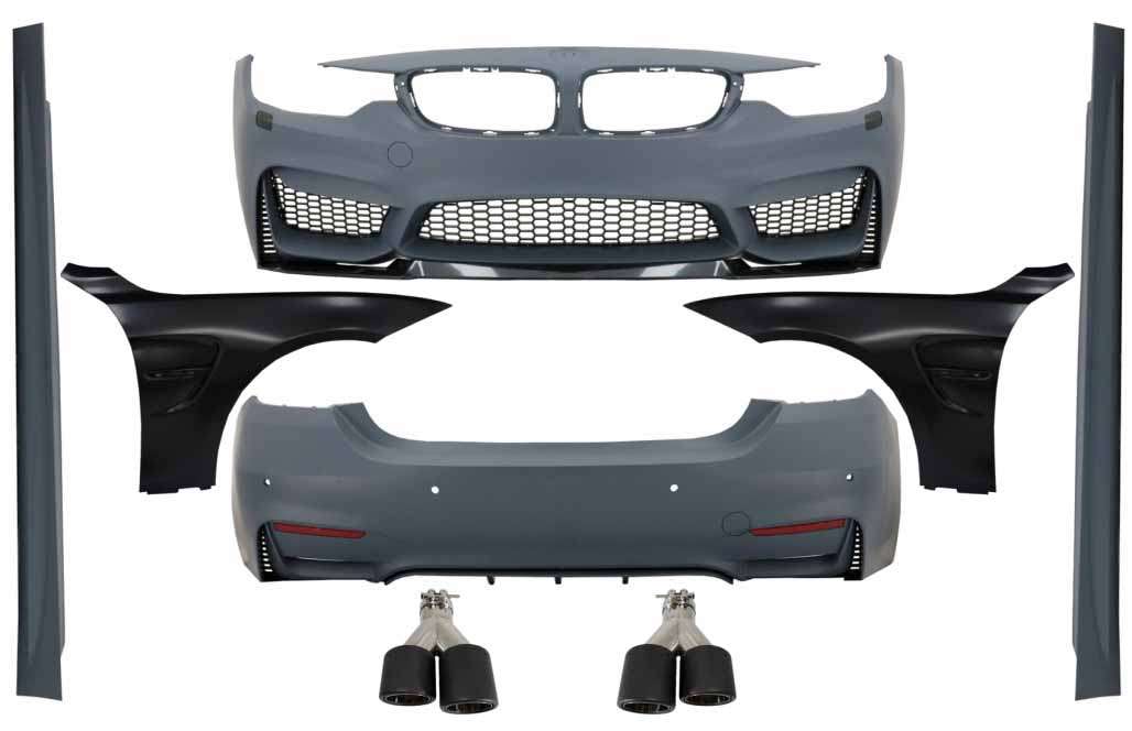 Complete Body Kit suitable for BMW 4 Series F32 F33 Coupe Cabrio (2013-2017) with Front Fenders and Dual Twin Exhaust Muffler Tips Carbon Fiber M4 Design