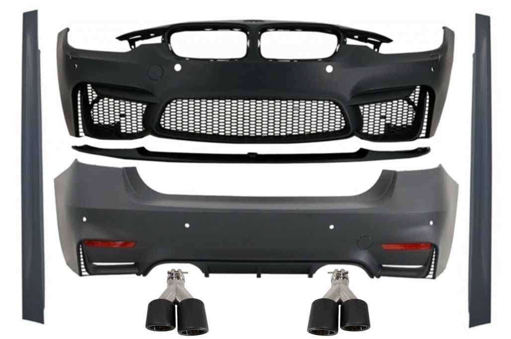 Complete Body Kit suitable for BMW F30 (2011-2019) with Dual Twin Exhaust Muffler Tips Carbon Fiber EVO II M3 CS Style Without Fog Lamps