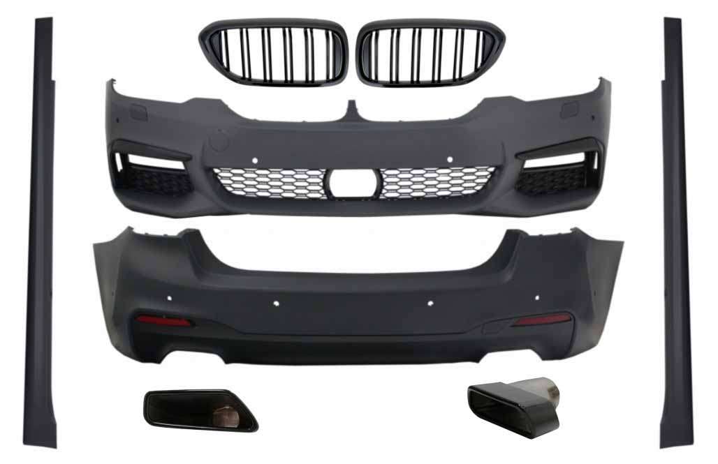 Complete Body Kit with Central Kidney Grilles Piano Black and Exhaust Muffler Tips suitable for BMW 5 Series G30 (2017-up) M-Tech Design