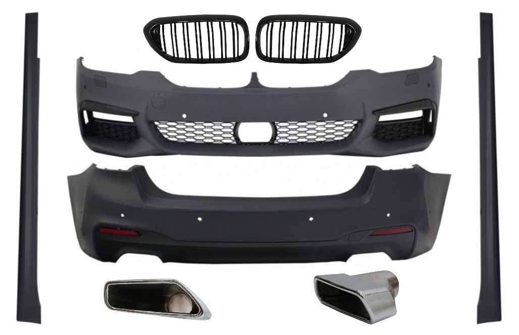 Complete Body Kit with Central Kidney Grilles Piano Black Double Stripe and Exhaust Muffler Tips suitable for BMW 5 Series G30 (2017-up) M-Tech Design