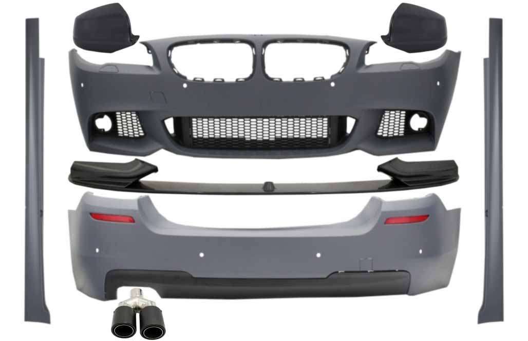 Complete Body Kit with Spoiler Lip and Mirror Covers Rear Carbon & Exhaust Muffler Tip Matte Carbon suitable for BMW 5 Series F10 Non LCI (2011-2014) M Design
