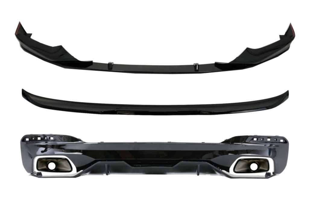 Diffuser With Exhaust Tips & Front Spoiler Lip and Trunk Boot Spoiler suitable for BMW 5 Series G30 Limousine (2017-up) 540 M Performance Look Piano Black