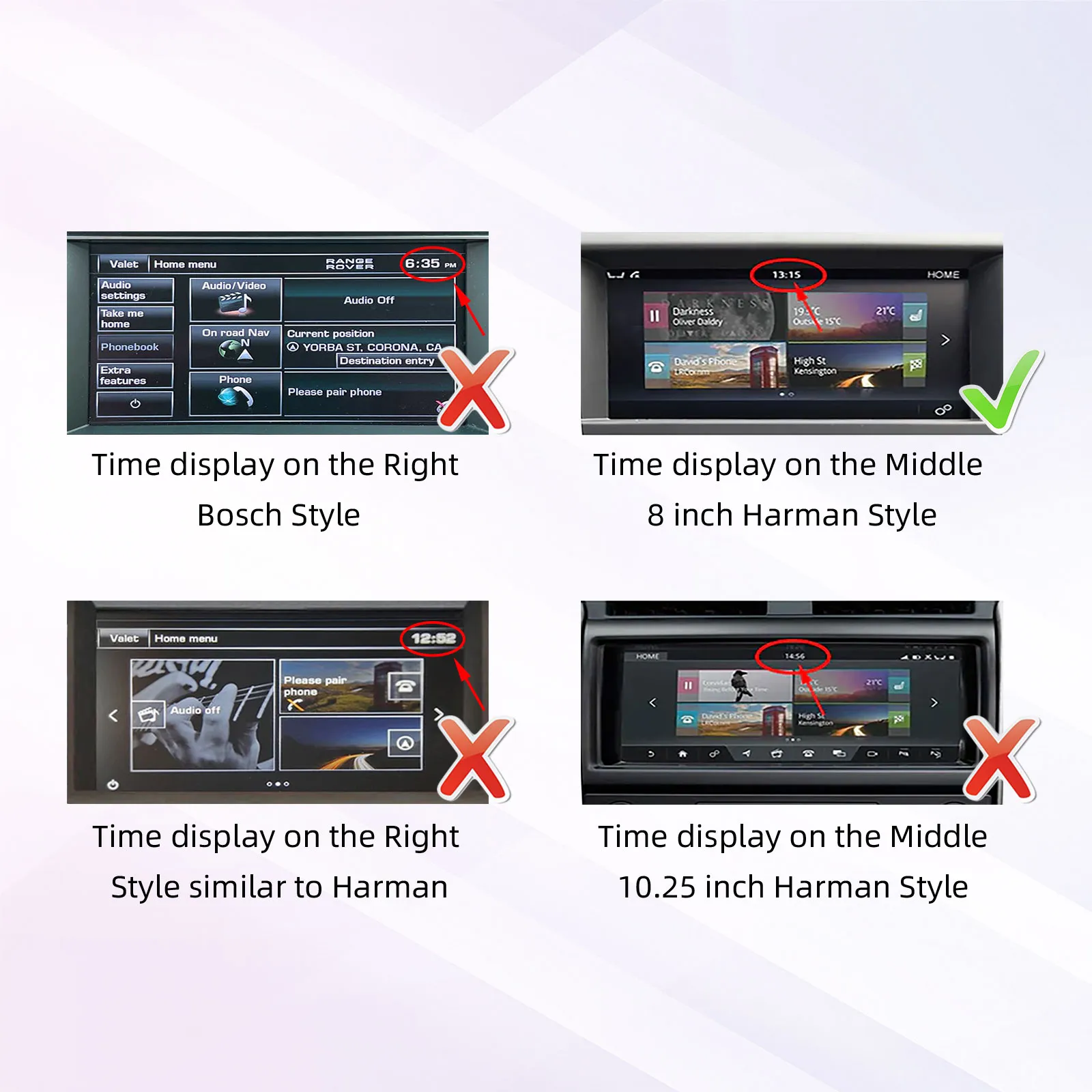 Συμβατό με Land Rover και JaguarΣυμβατό με μοντέλα Land Rover που διαθέτουν μεσαία οθόνη Harman – Style 8 ιντσών, ενώ δεν υποστηρίζει δεξιά οθόνη Harman – Style 10,25 ιντσών, για μια ομαλή εμπειρία οδήγησης Compatible With Land Rover and JaguarCompatible with Land Rover Models Featuring Middle 8 – inch Harman – Style Time Display, While Not Supporting Right – Side Time Display or Middle 10.25 – inch Harman – Style Screens, for a Smooth Carplay Experience |