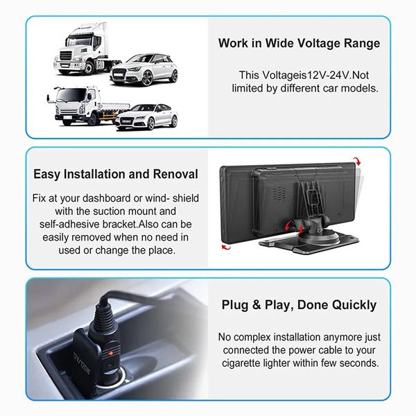 Εύκολη χρήση και ευρεία συμβατότηταΥποστηρίζει τάση 12V-24V, εύκολη εγκατάσταση και αφαίρεση, γρήγορη σύνδεση και λειτουργία, προσφέρει έξυπνη εμπειρία οδήγησης χωρίς προβλήματα Easy Use & Broad CompatibilitySupport 12V-24V Voltage, Easy Installation and Removal, Plug & Play Quickly, Bring Hassle-Free Smart Driving Experience |