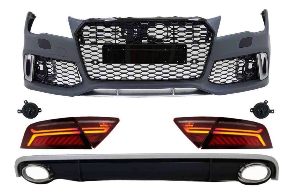 Front Bumper & Rear Diffuser with Exhaust Tips and LED Taillights suitable for Audi A7 4G Pre-Facelift (2010-2014) RS7 Design