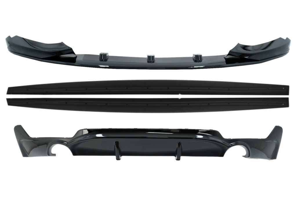 Front Bumper Spoiler Lip suitable for BMW 4 Series F32 F33 F36 Coupe Cabrio Grand Coupe (2013-03.2019) with Side Skirts Add-on Lip Extensions and Rear Bumper Diffuser Twin Double Outlet