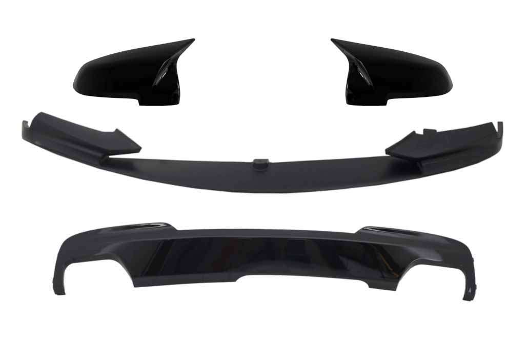 Front Bumper Spoiler Lip with Mirror Covers and Double Outlet Air Diffuser Piano Black suitable for BMW 5 Series F10 F11 Sedan Touring (2015-2017) M-Performance Design
