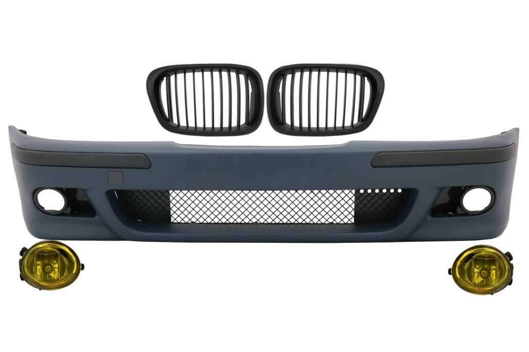 Front Bumper with Central Grilles Kidney Matte Black and Fog Lights Yellow suitable for BMW 5 Series E39 1995-2003 M5 Design
