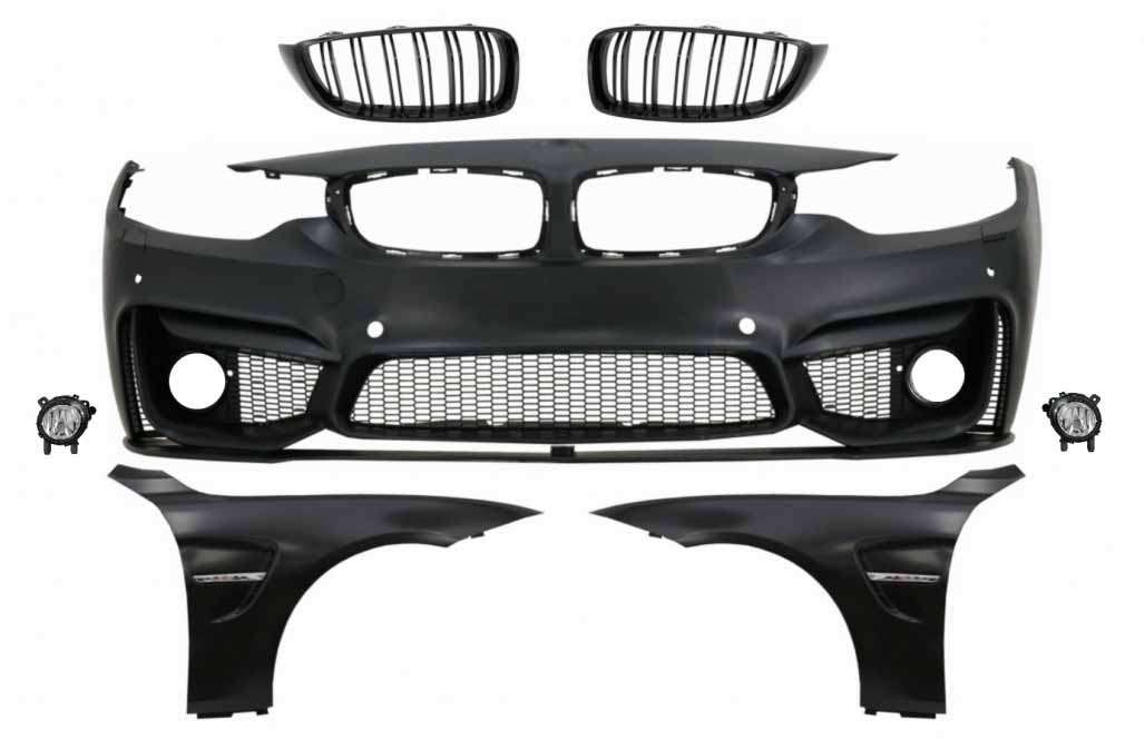 Front Bumper with Grilles Piano Black and Front Fenders suitable for BMW 4 Series F32 Coupe F33 Convertible F36 Gran Coupe (2013-02.2017) M4 Design