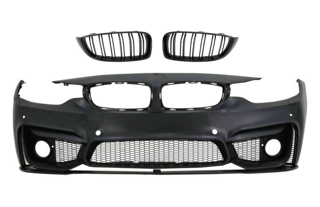 Front Bumper with Grilles Piano Black suitable for BMW 4 Series F32 Coupe F33 Convertible F36 Gran Coupe (2013-2017) M4 Design