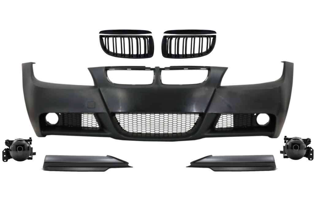 Front Bumper with Kidney Grilles and Spoiler Lip suitable for BMW 3 Series E90 E91 Sedan Touring (2004-2008) M-Technik Design