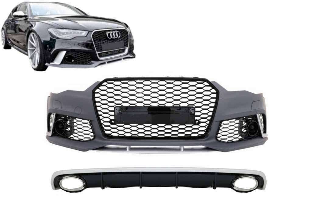 Front Bumper with Rear Bumper Diffuser with Exhaust Tips suitable for Audi A6 C7 4G Facelift (2011-2014) RS6 Design