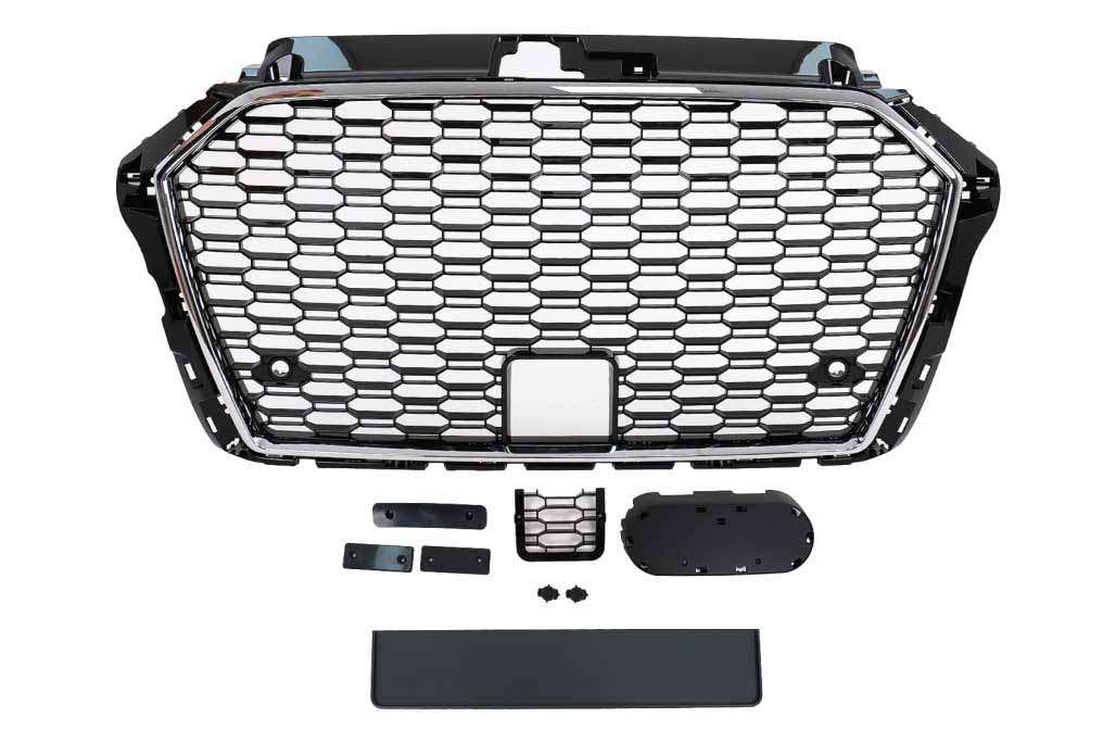 Front Grille suitable for Audi A3 8V Facelift (2017-2019) RS3 Design Black Chrome