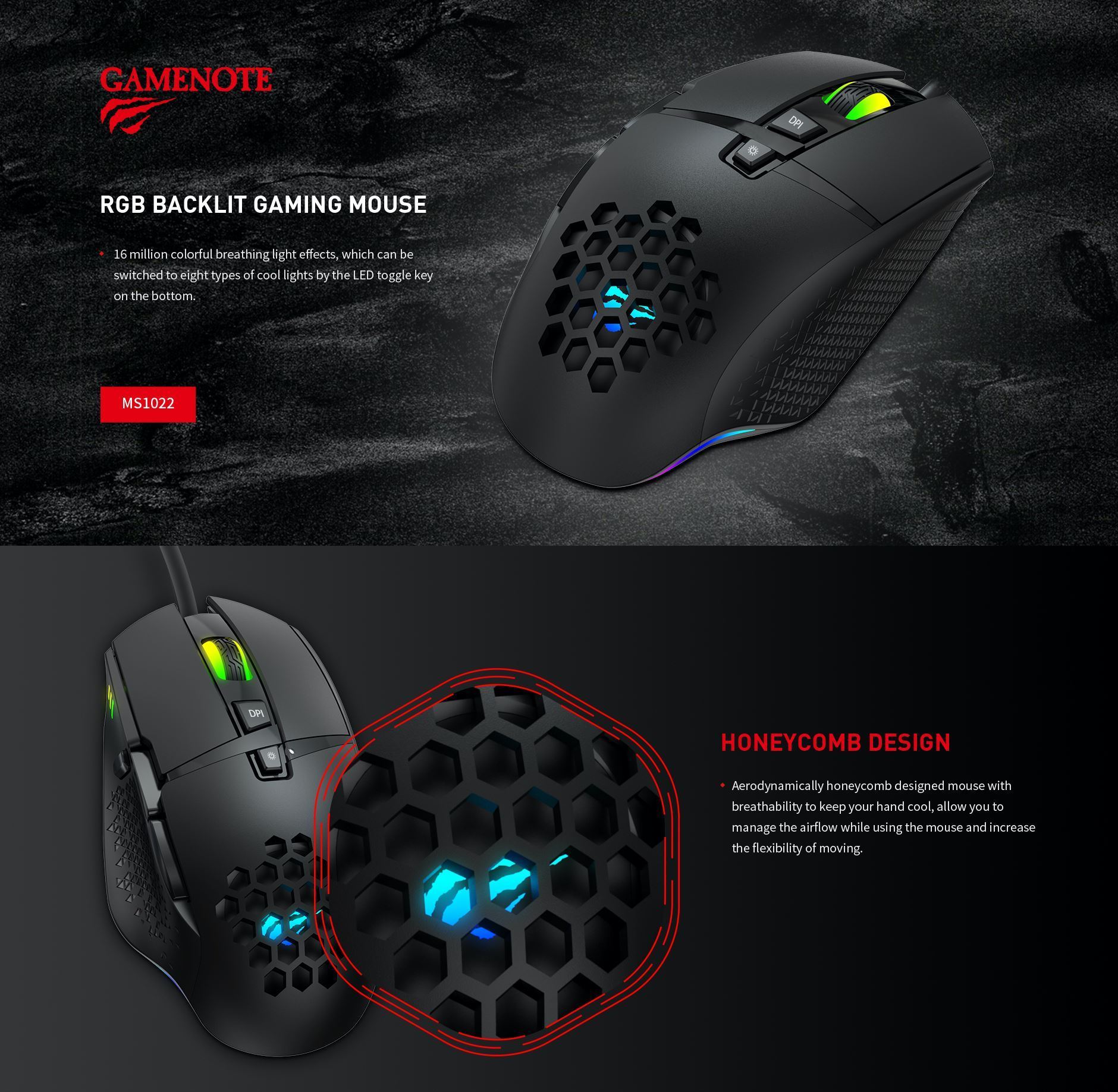 Ο σχεδιασμός του ποντικιού έχει μελετηθεί προσεκτικά ώστε να παρέχει στους χρήστες ακόμη μεγαλύτερη άνεση. Τα ειδικά καλούπια κηρήθρας επιτρέπουν μια συνεχή ροή αέρα μεταξύ του χεριού και του ποντικιού, έτσι ώστε το χέρι να μην γλιστρά πάνω από την επιφάνειά του.
