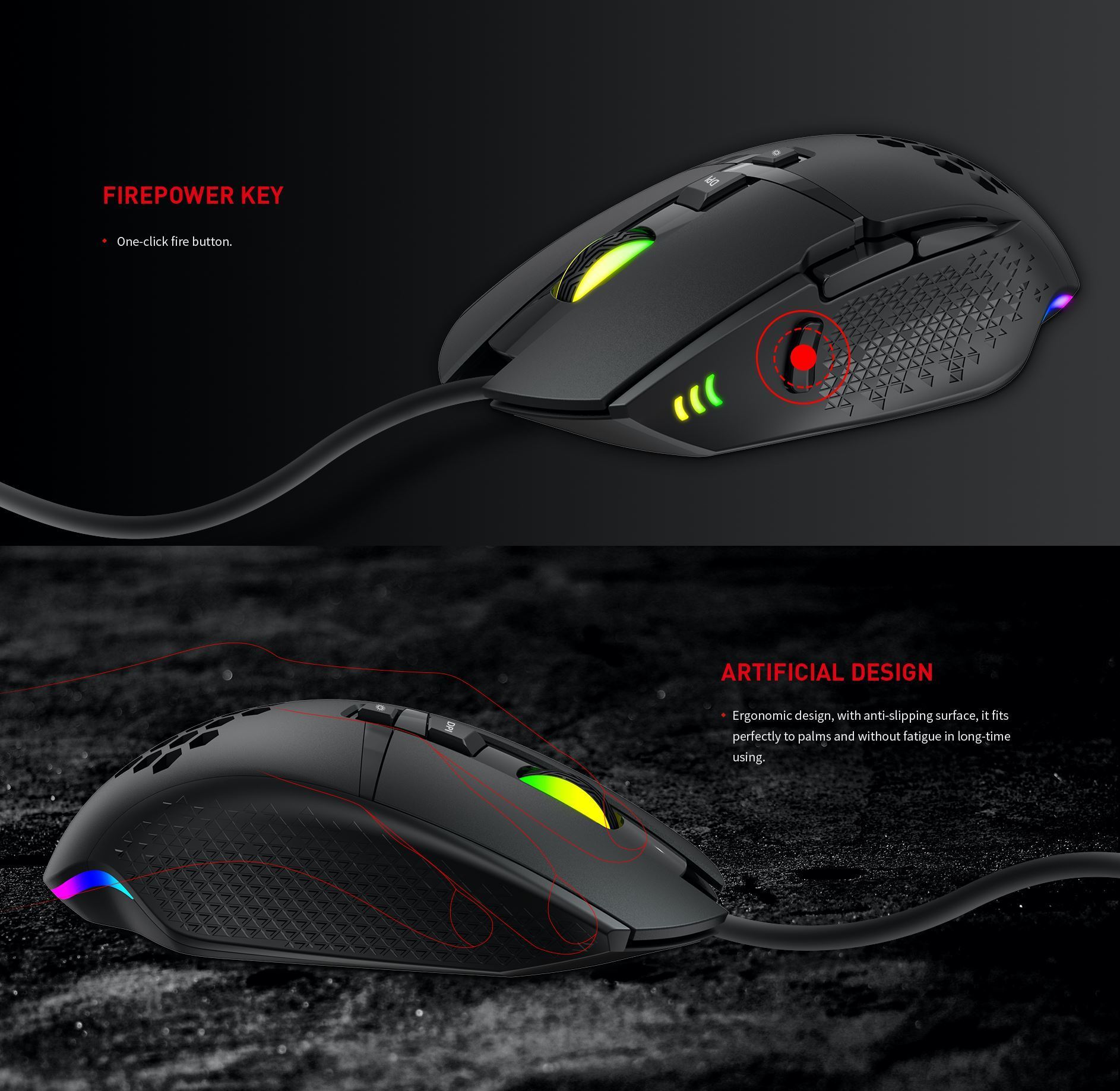 Ο εξαιρετικός σχεδιασμός του ποντικιού, το εργονομικό του σχήμα και ο κομψός οπίσθιος φωτισμός του παιχνιδιού το καθιστούν μια εξαιρετική επιλογή για όποιον απαιτεί ποιότητα και την καλύτερη απόδοση του παίκτη.