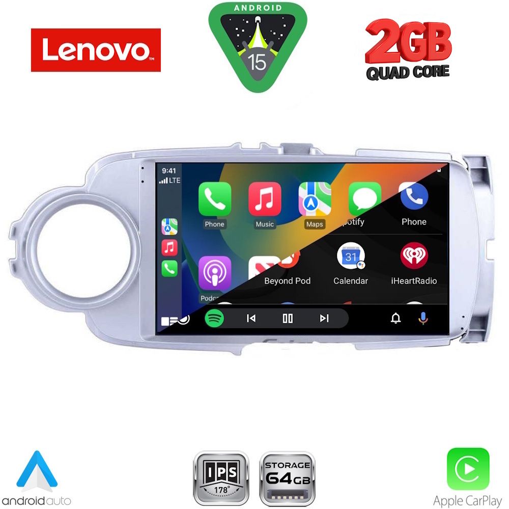 LENOVO LVD 2737SL_CPA (9inc) MULTIMEDIA TABLET for TOYOTA YARIS mod. 2011-2015 (SILVER)