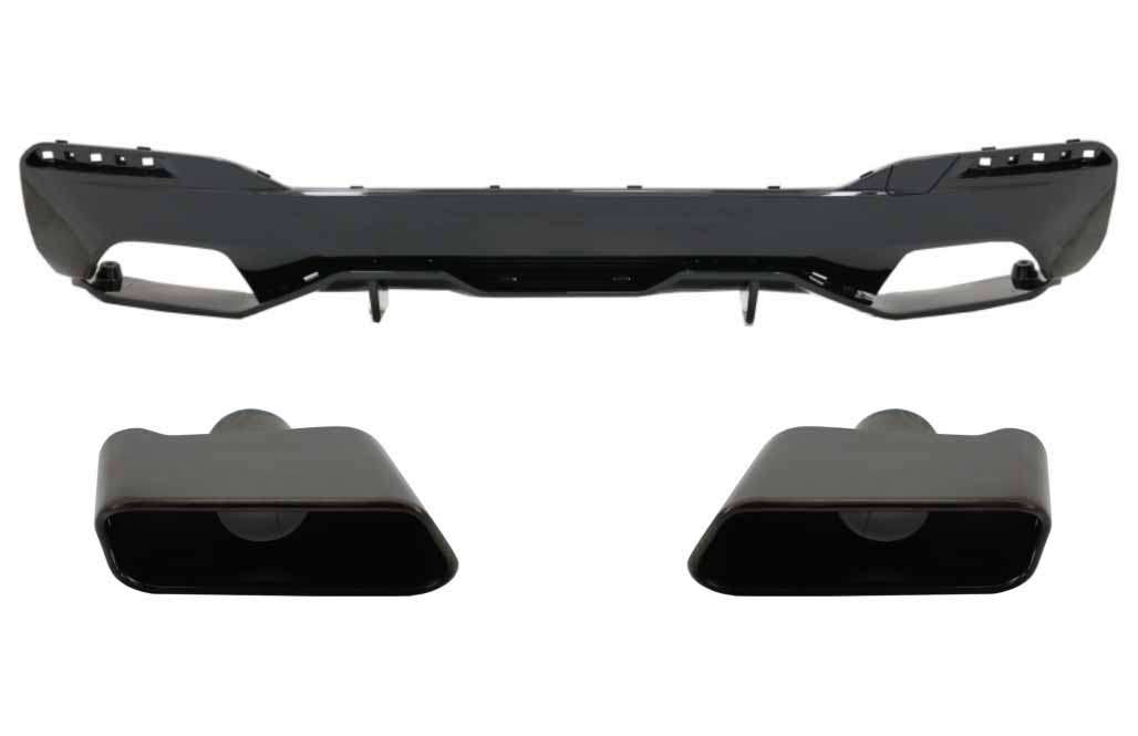 Rear Bumper Diffuser suitable for BMW 5 Series G30 G31 Limousine Touring (2017-up) with Exhaust Muffler Tips M Performance Design Black Edition