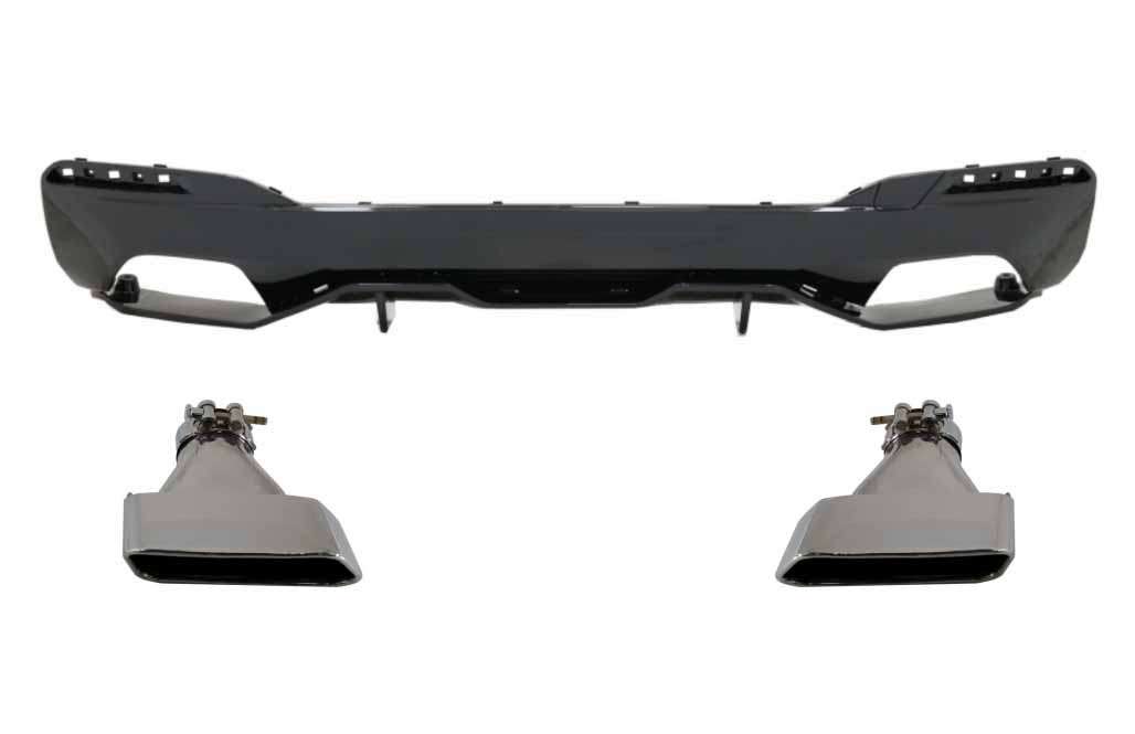 Rear Bumper Diffuser suitable for BMW 5 Series G30 G31 Limousine Touring (2017-up) with Exhaust Muffler Tips M Performance Design Piano Black