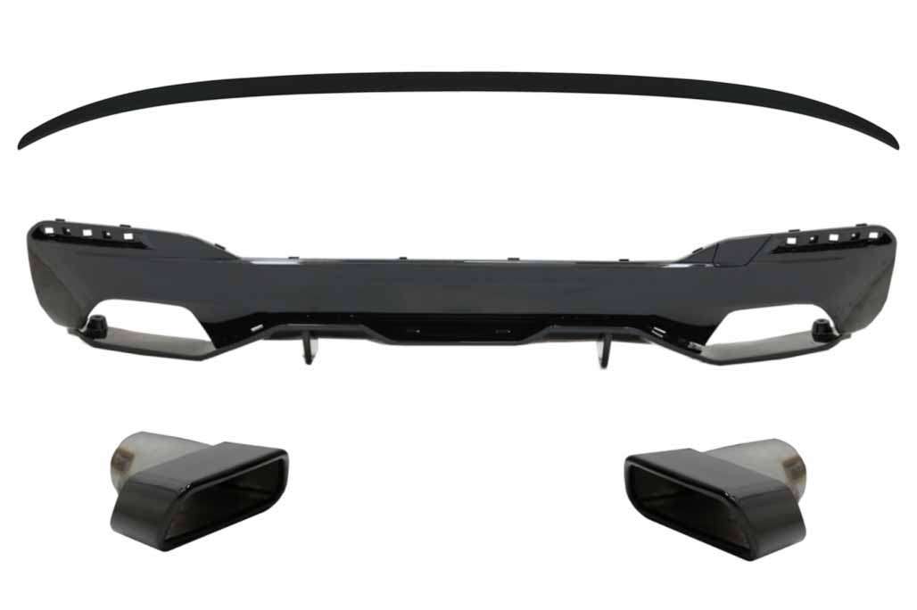 Rear Bumper Diffuser with Exhaust Muffler Tips Black and Trunk Boot Spoiler suitable for BMW 5 Series G30 Limousine (2017-up) M Performance Design