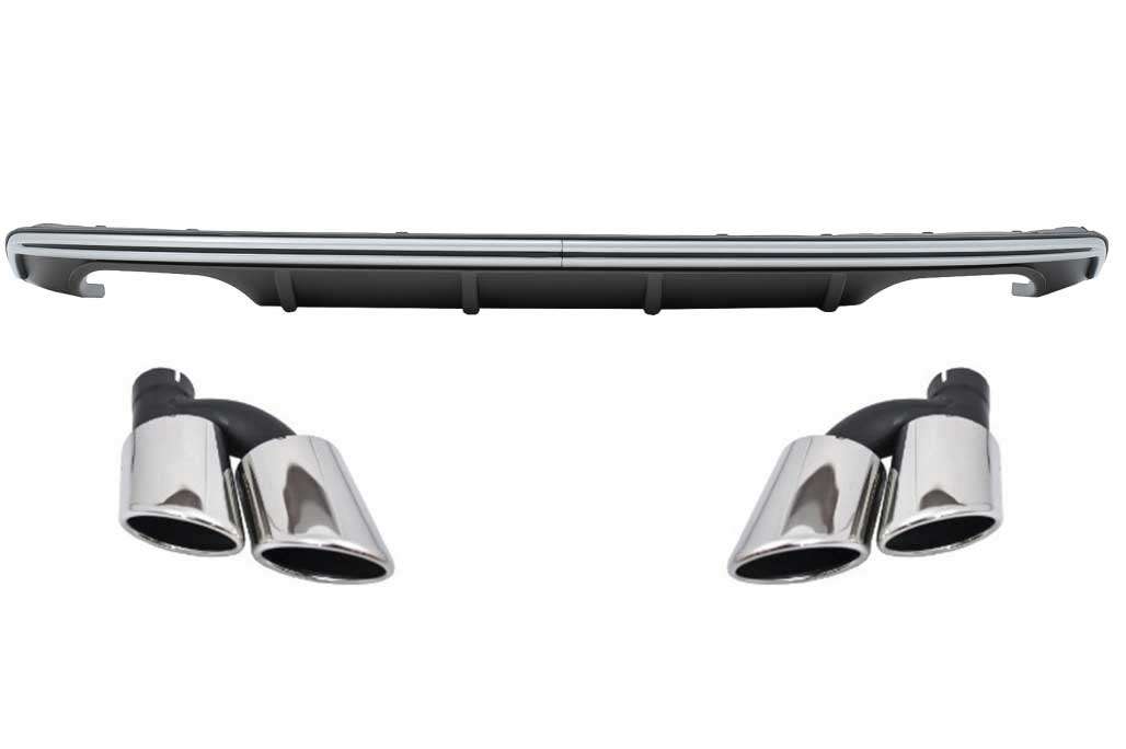Rear Bumper Valance Diffuser suitable for Audi A3 8V Hatchback Sportback (2012-2015) with Exhaust Muffler Tips Tail Pipes S3 Quad Design