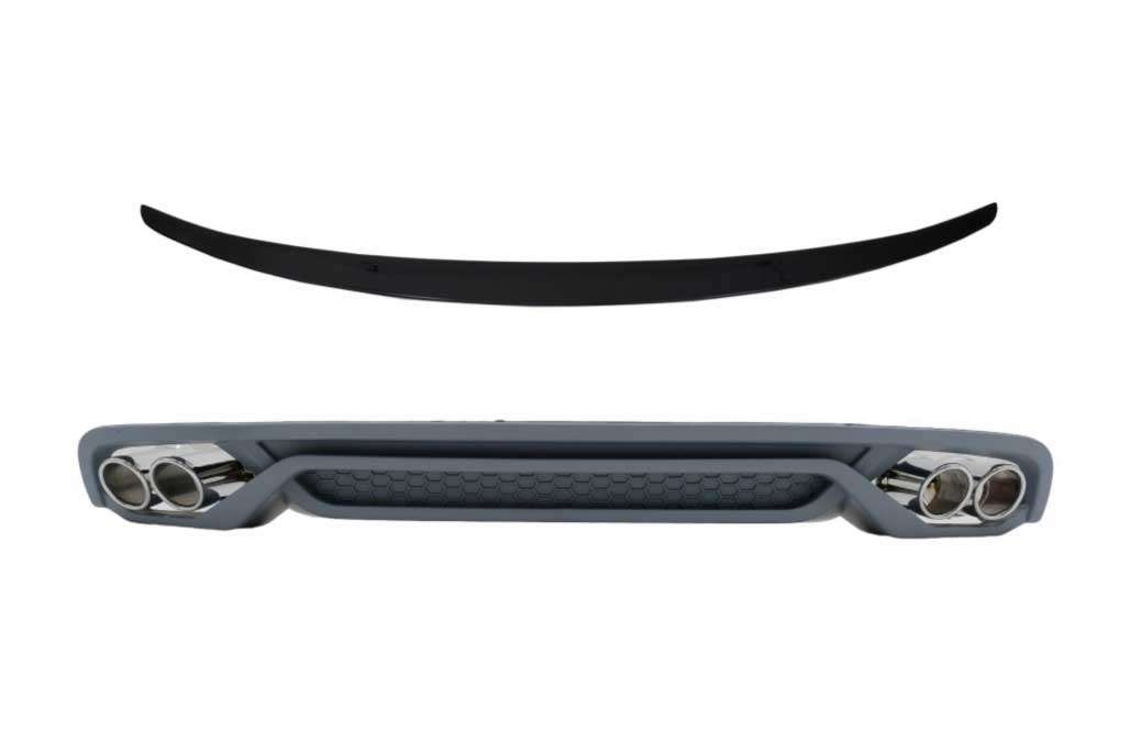 Rear Bumper Valance Diffuser with Exhaust Tips and Trunk Spoiler Piano Black suitable for Audi A4 B8 Sedan Facelift (2012-2015)