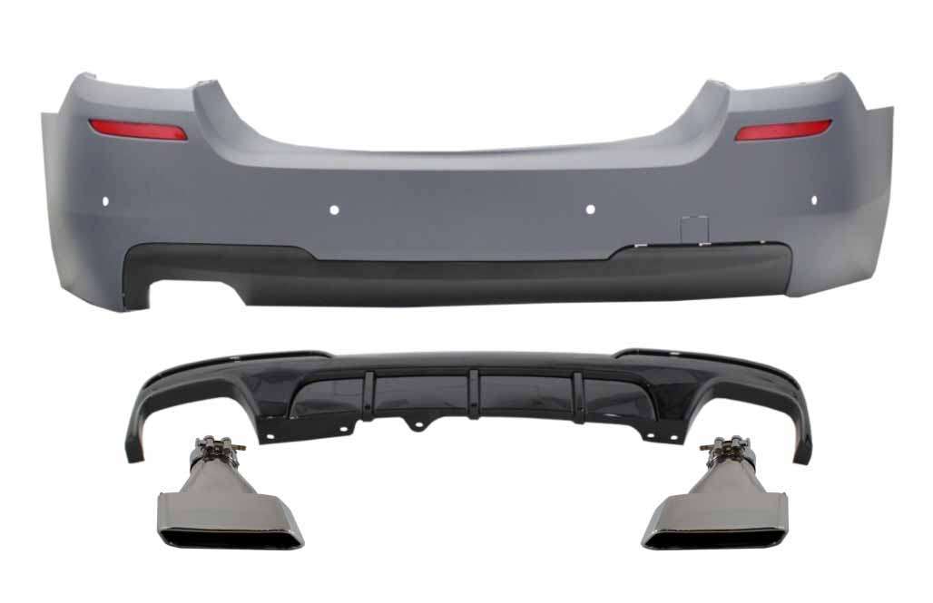 Rear Bumper with Double Outlet Diffuser and Exhaust Tips Aluminium suitable for BMW 5 Series F10 (2011-2017) M-Performance Design