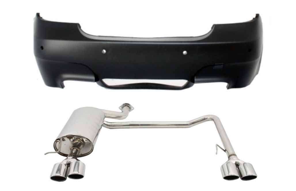 Rear Bumper with PDC 24mm suitable for BMW 5 Series E60 (2003-2007) and Exhaust System Twin Double Quad M5 Design