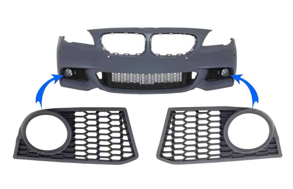 IntroThese side griles are meant to replace damaged one from your BMW 5 Series M-Technik.Suitable forBMW 5 Series F10 Sedan (2011-2014) with M-Technik Design Bumper